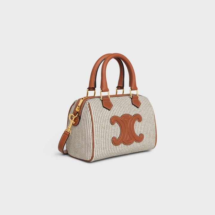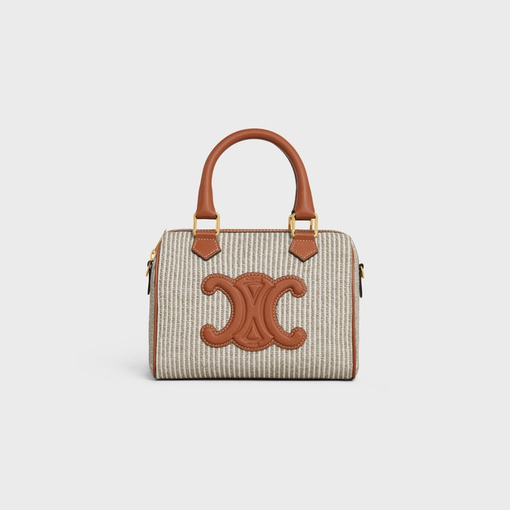 Celine Small Boston Cuir Triomphe in Striped Textile and Calfskin (Beige)