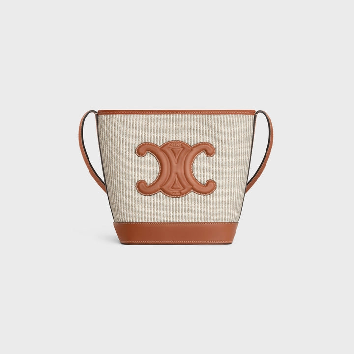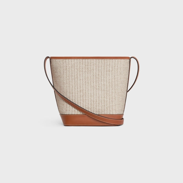 Celine Small Bucket Cuir Triomphe in Striped Textile and Calfskin (Beige)