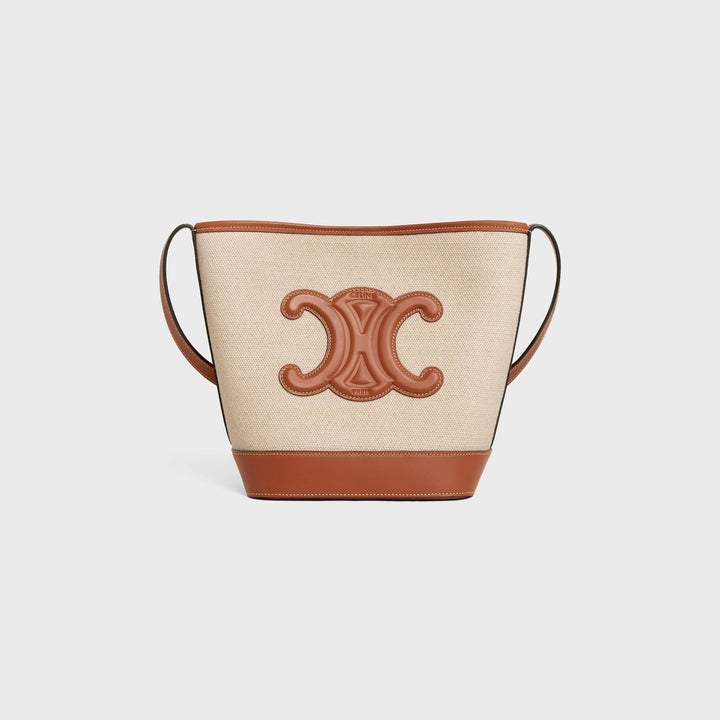 Celine Small Bucket Cuir Triomphe in Textile and Calfskin (Natural/Tan)