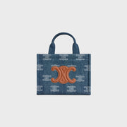 Celine Small Cabas Thais in Denim with Triomphe All-over Embroidery and Calfskin (Navy/Tan)