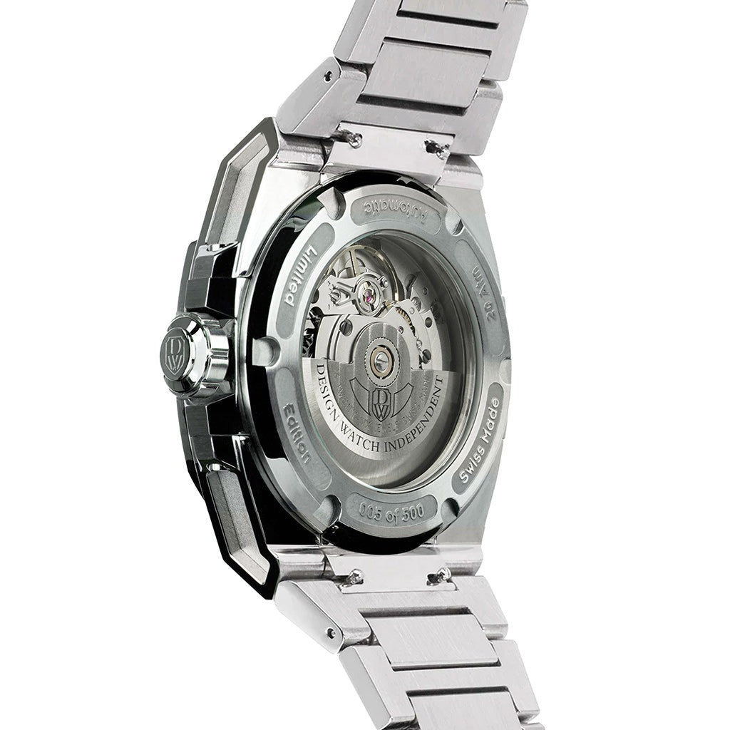 Dial: White dial with with blue accents, and DWISS signature mysterious hours