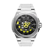Case: Swiss made. 316L Stainless Steel, exclusive easy interchangeable strap mechanism, See-through case back