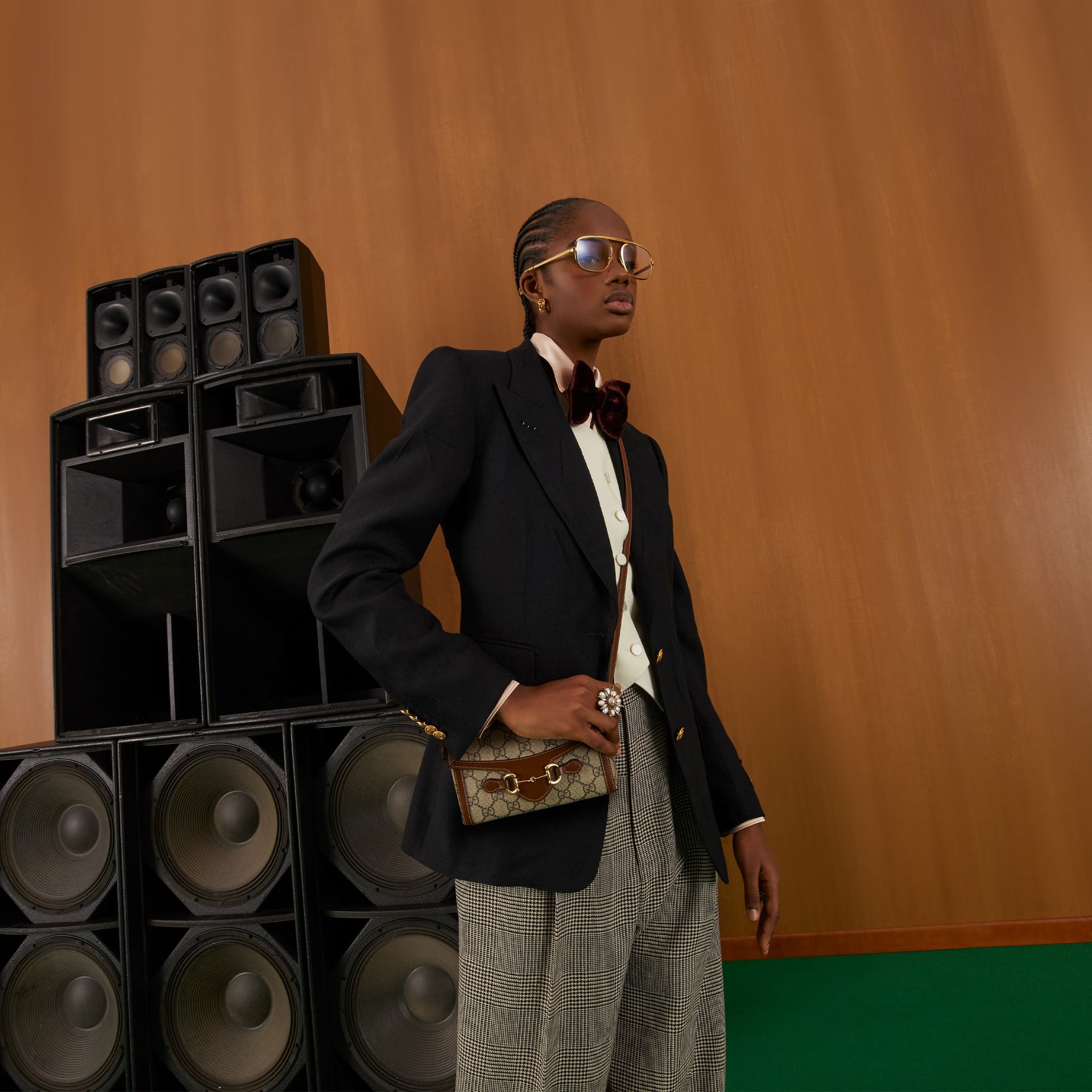 - Gold-toned hardware
