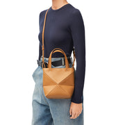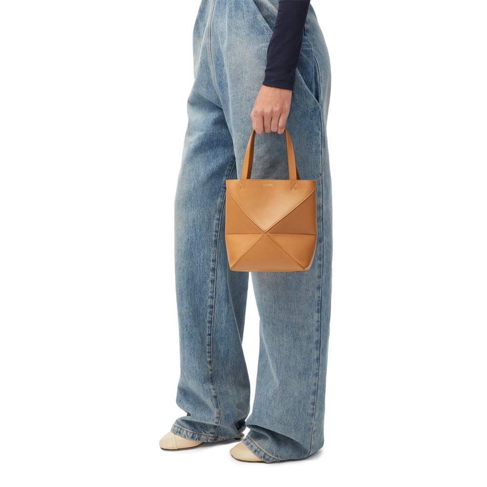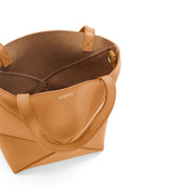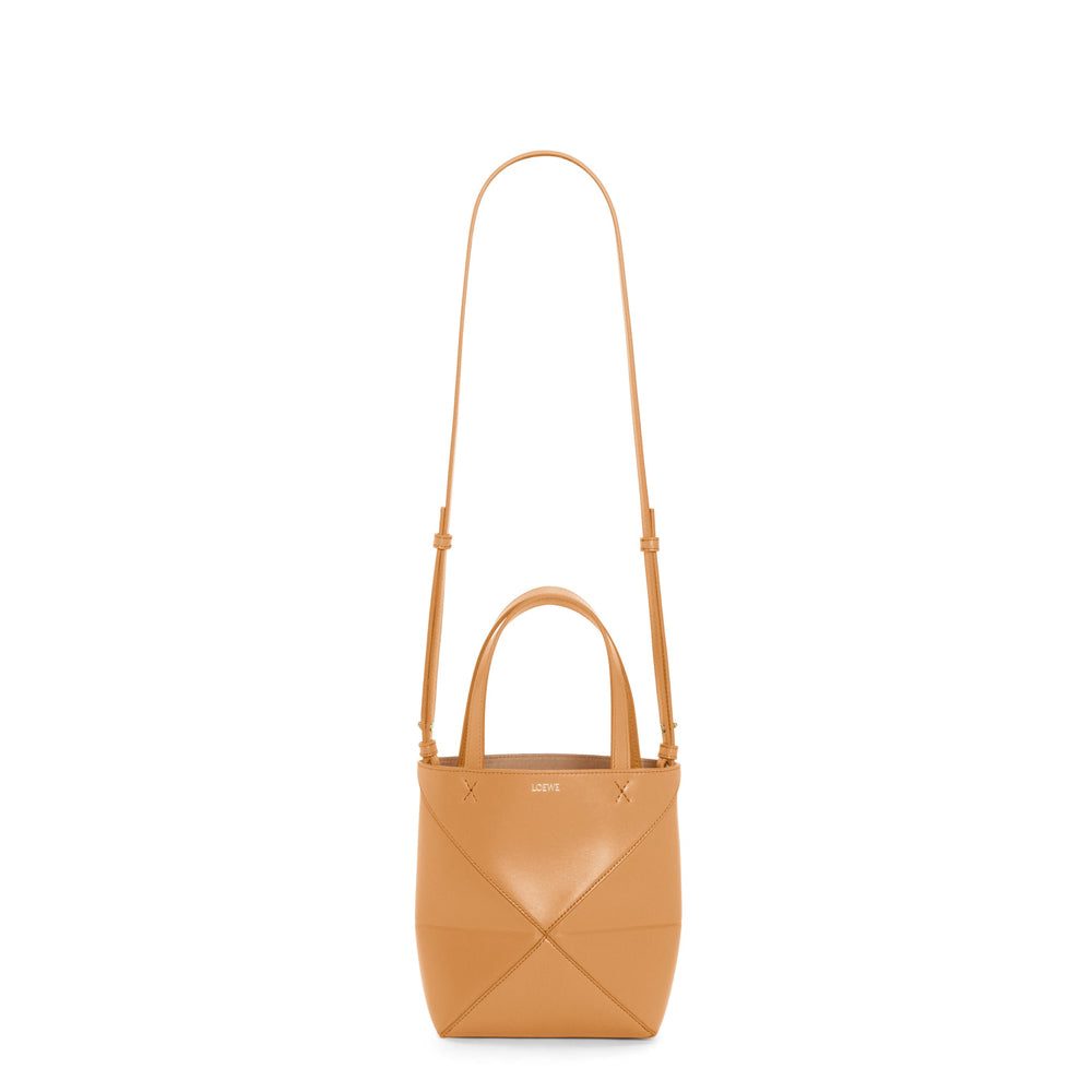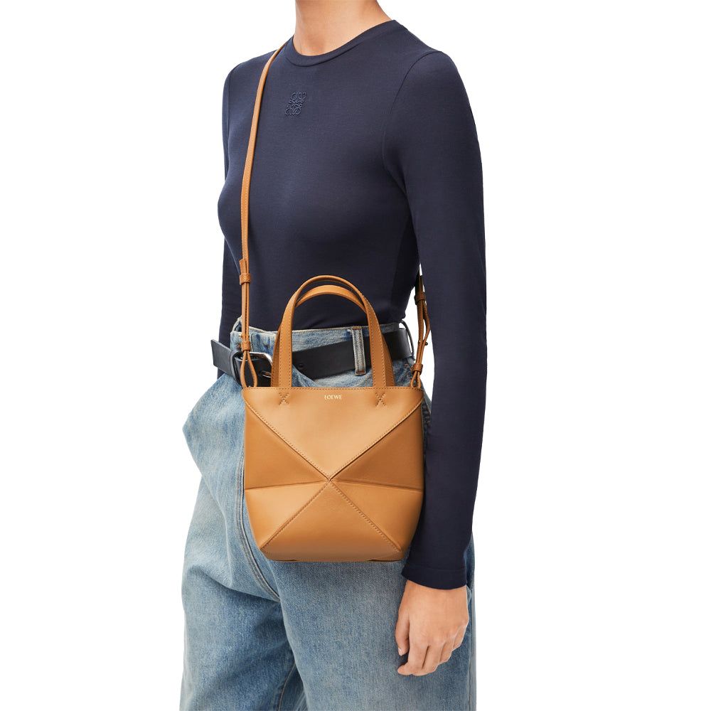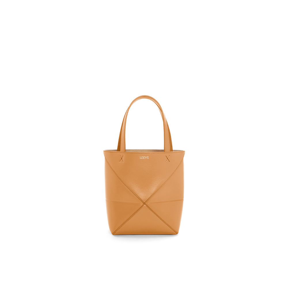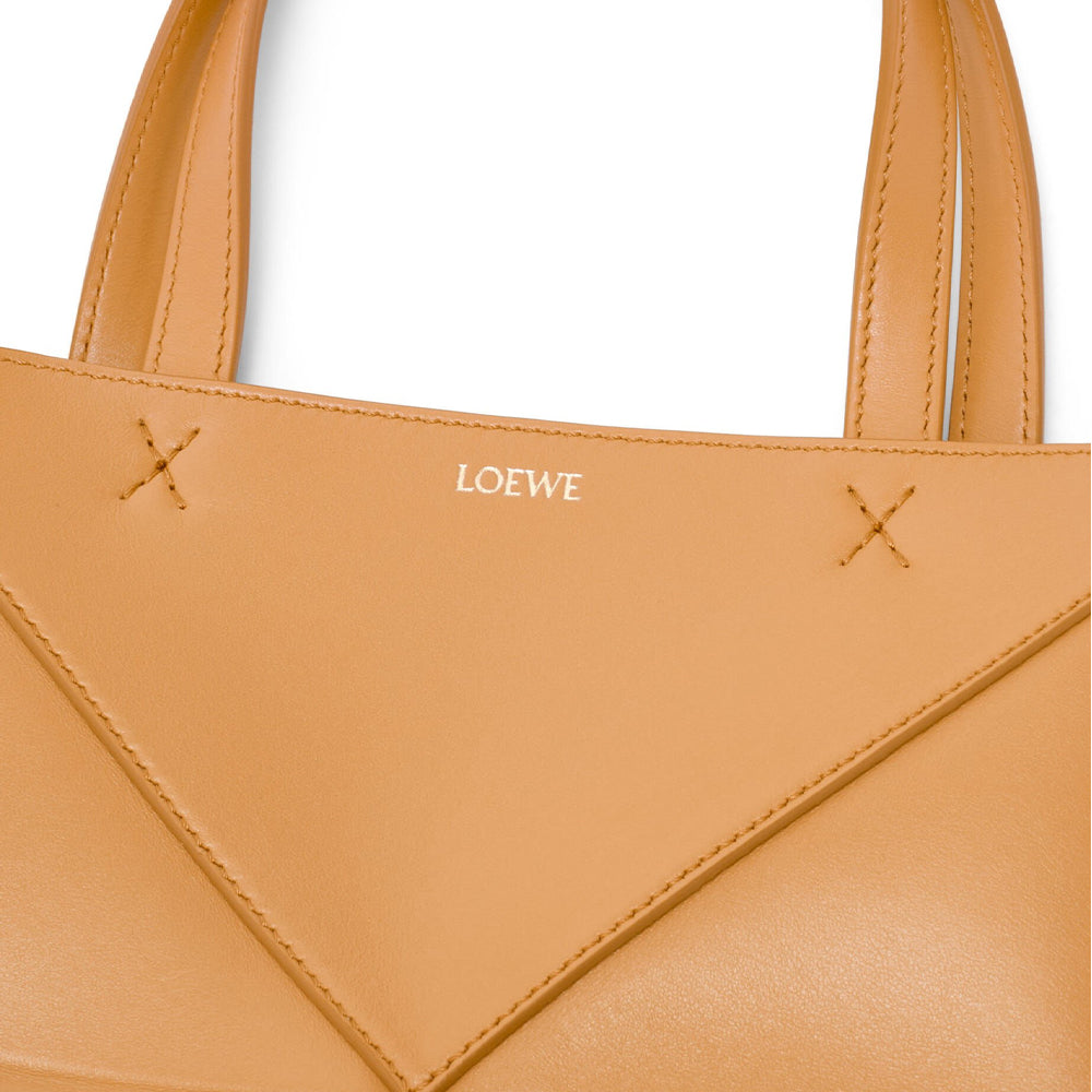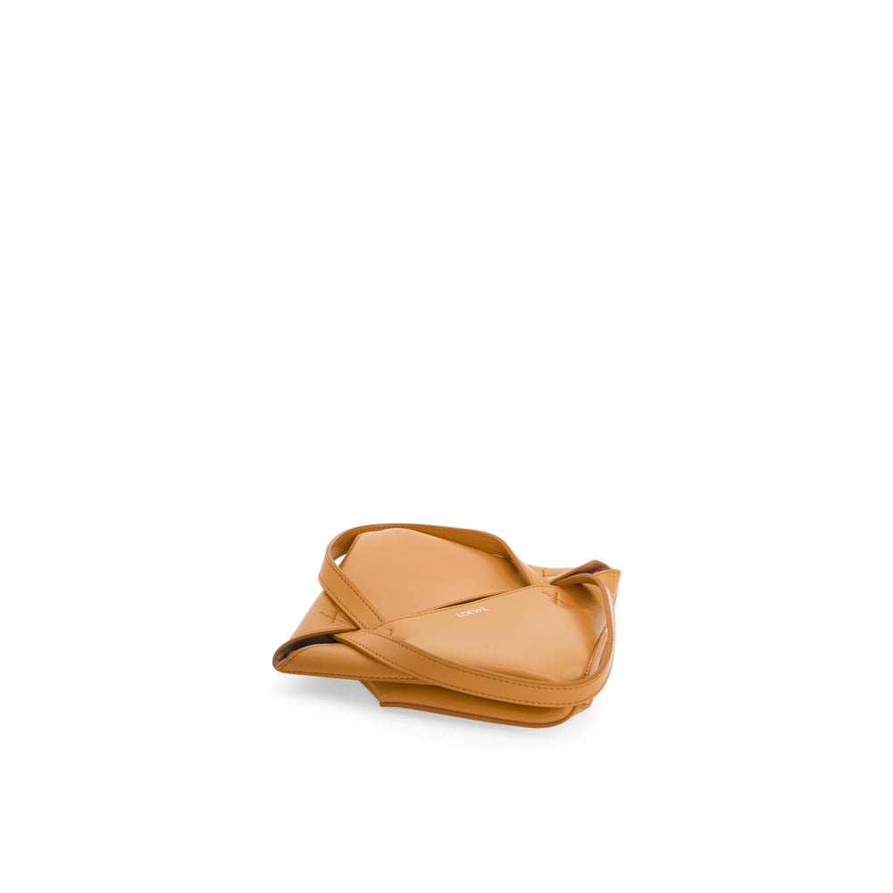 Loewe Mini Puzzle Fold Tote in shiny calfskin (Warm Desert)