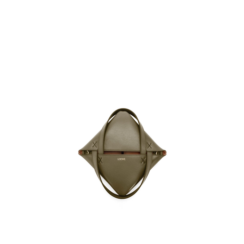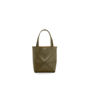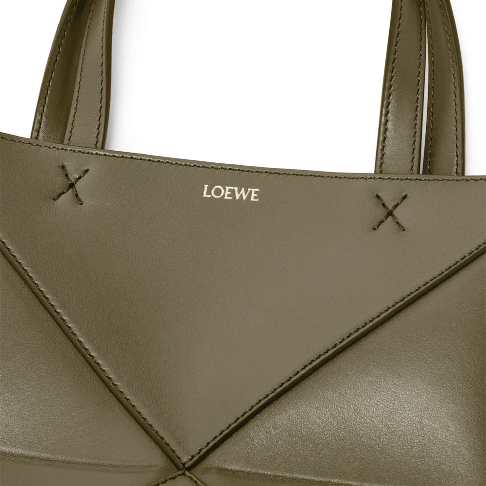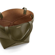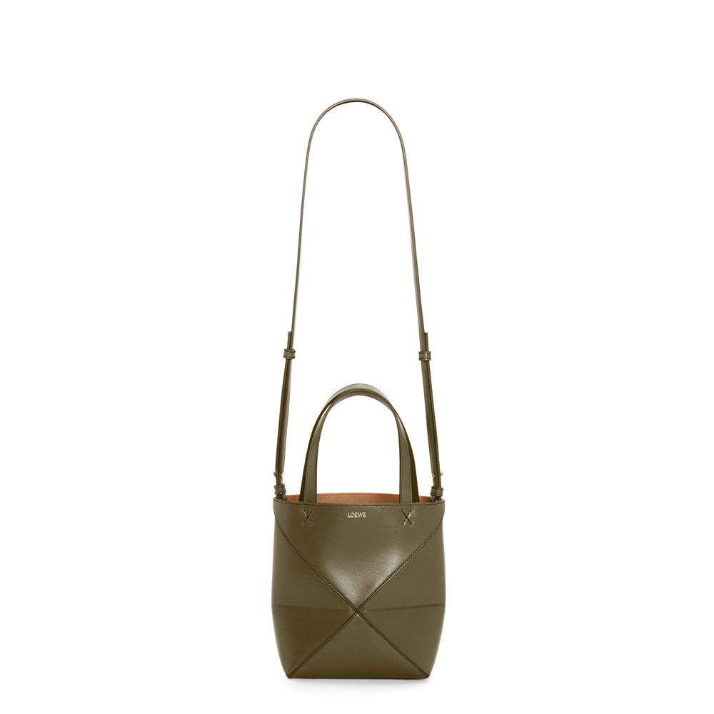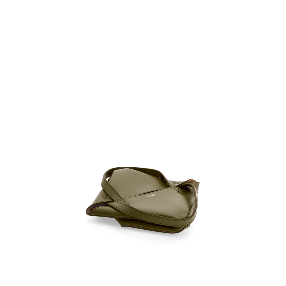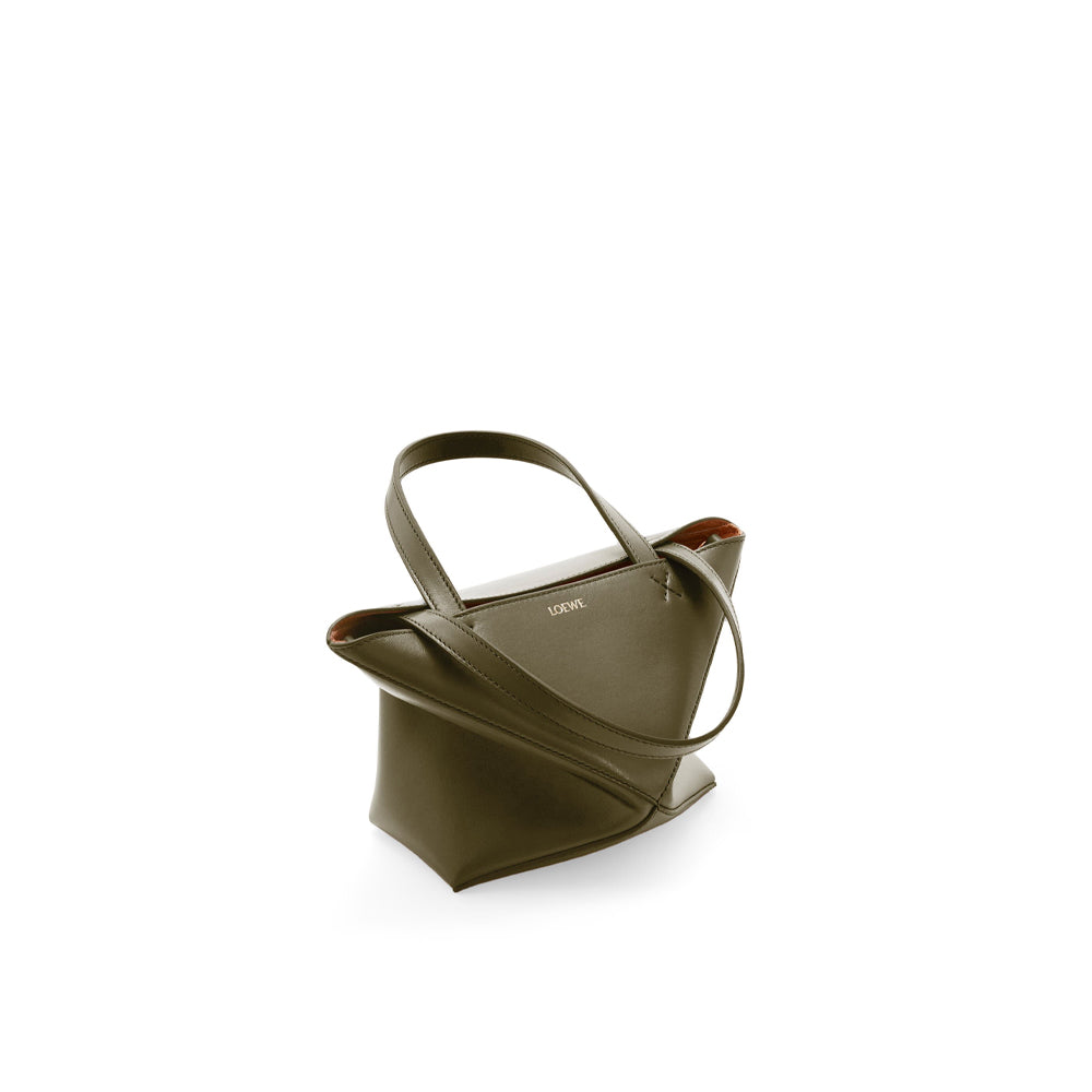Loewe Mini Puzzle Fold Tote in shiny calfskin (Dark Khaki Green)