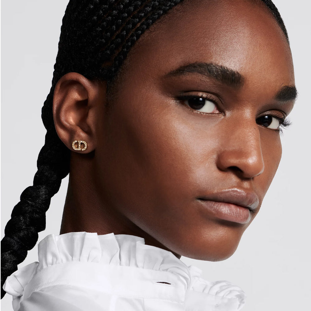 The Petit CD stud earrings present a miniature version that combines modernity with iconic design. The gold-finish metal CD signature features a pavé of silver-tone crystals, subtly adorning the ear. The timeless stud earrings can be coordinated with other creations from the Petit CD line.