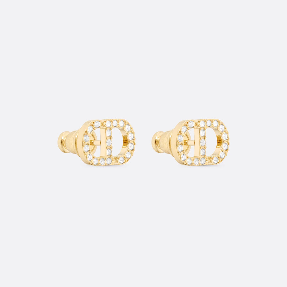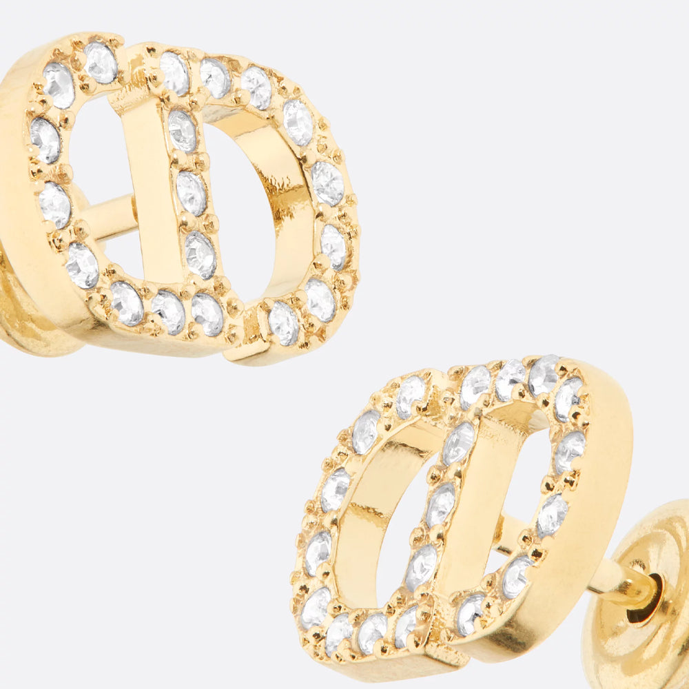 Dior Petit CD Mini Stud Earrings (Gold-Finish Metal and Silver-Tone Crystals)