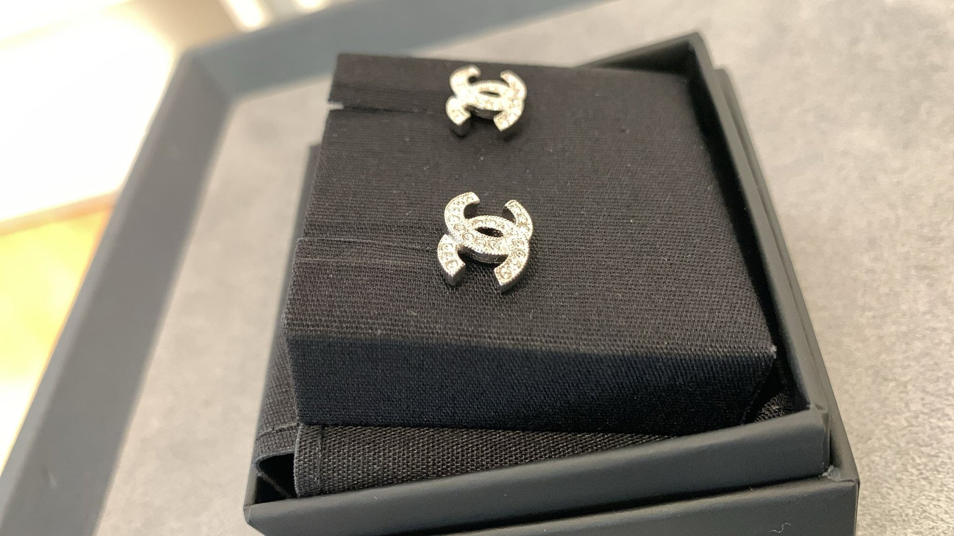 Hong Kong Stock - Chanel CC Logo Classic Earrings Sliver ABE100